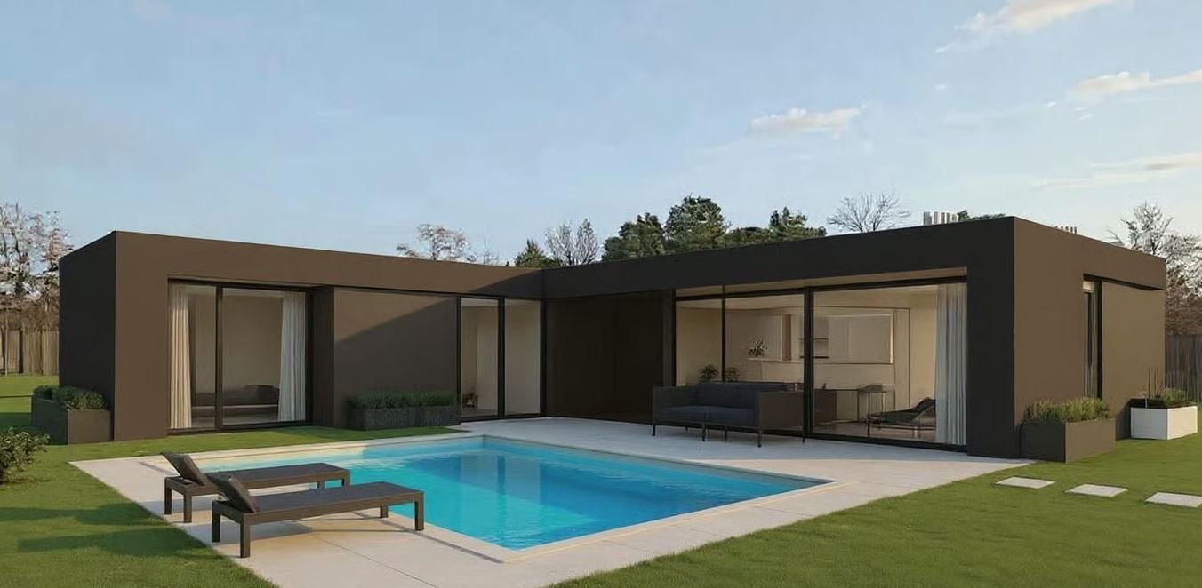 El Modelo FEITIÑA es una vivienda compacta pero extraordinariamente bien pensada, donde cada metro cuadrado se aprovecha al máximo sin renunciar al diseño, la comodidad y la conexión con el jardín.